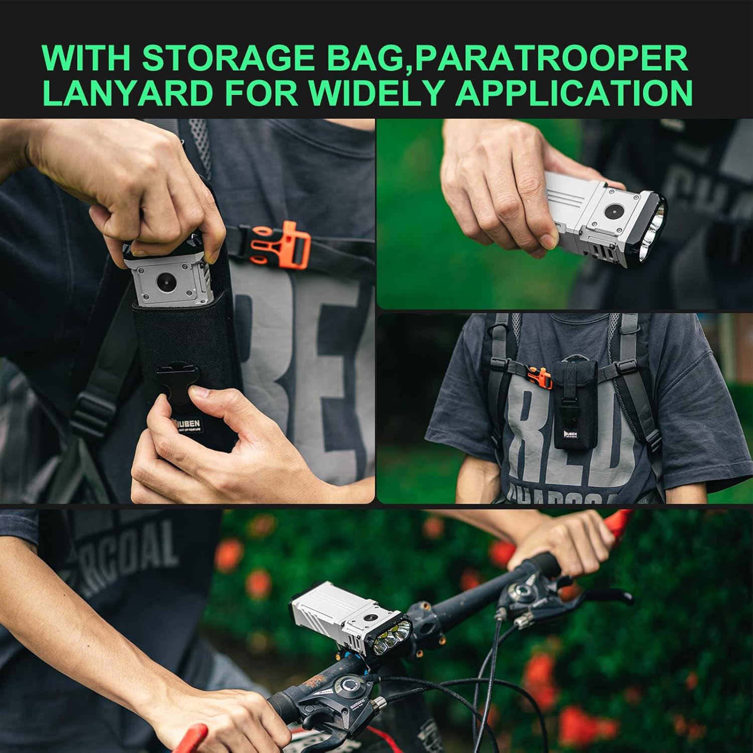 - HIGH-SPEED COOLING:WUBEN X1 led flashlight has temperature control and a built-in high-speed waterproof fan, the structure of active heat dissipation makes the flashlight achieve constant current without downshifting.