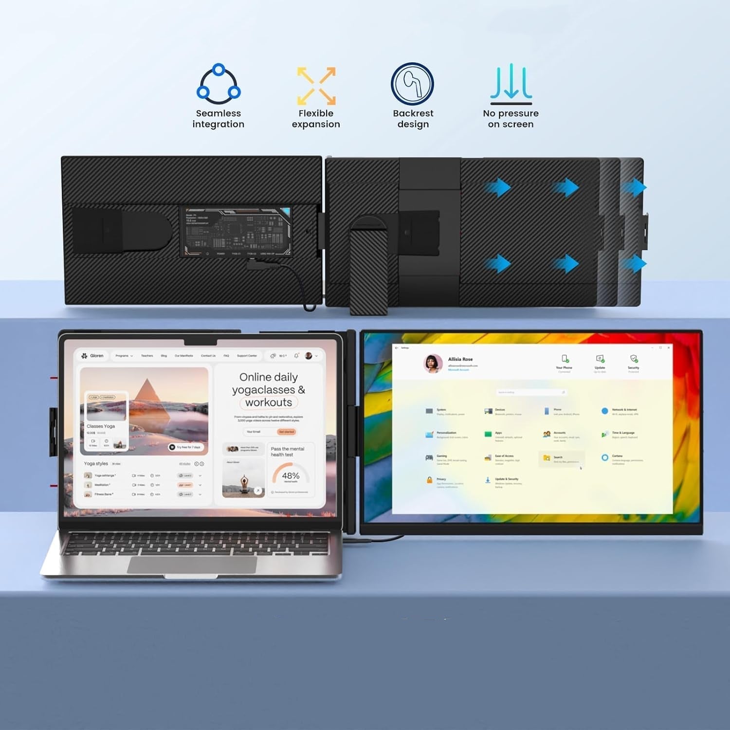 - Innovative 15.6'' Laptop Screen Extender:Design with a larger display area while controlling the overall size. The laptop monitor extender with 1080P FHD IPS display has a brightness of 300 nits and a color gamut of 85% NTSC. Provide clearer image display and more colorful visual effects for your work and play and it creates a more space-save and efficient workstation for you.