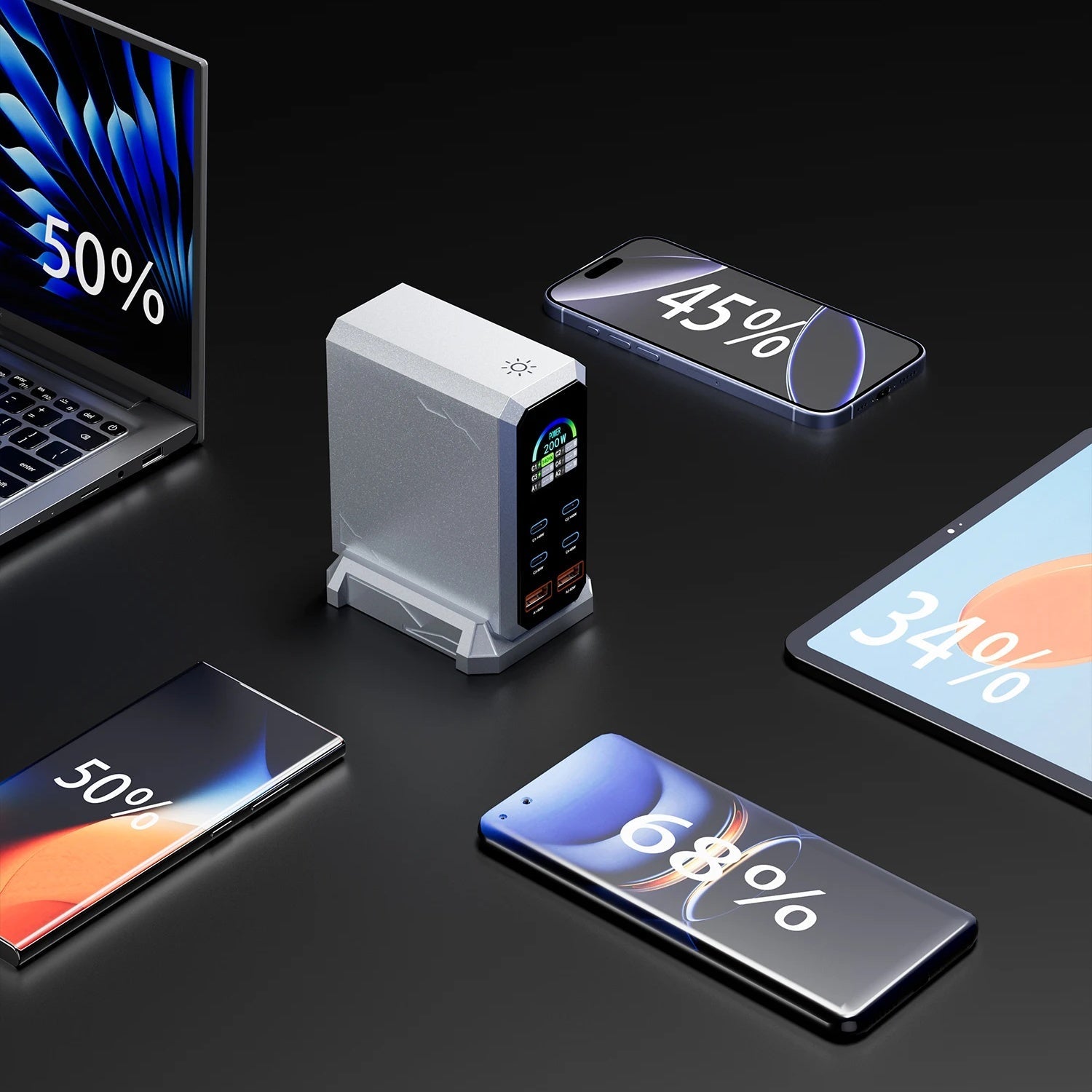 - Most Advanced Fast Charging Protocol: Compatible with the most advanced PD3.1 and QC5.0 fast charging protocols as well as common protocols such as PPS, AFC, FCP, etc. According to experimental data, this 240W charging station can quickly charge most devices.
