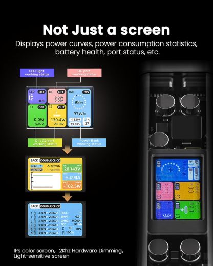 - Rich battery information is waiting for you to explore in the display. With IP66 grade waterproof function and -40-50 degree Celsius applicable temperature, it is your solid outdoor power.